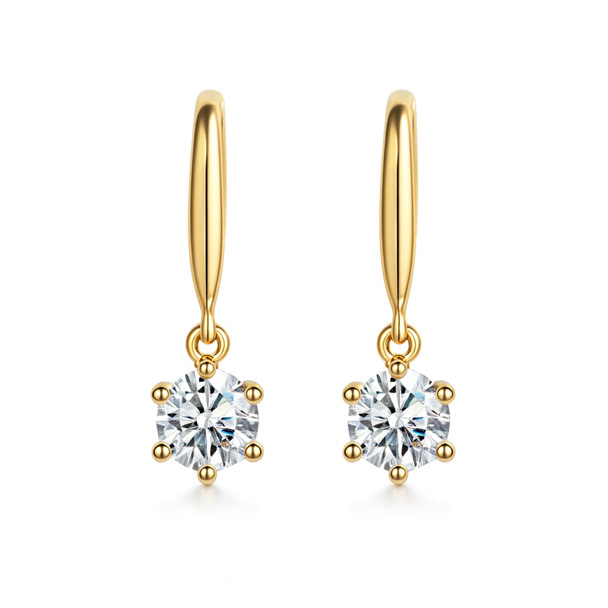 These elegants drop huggie hoops feature dazzling Moissanite diamonds that shine with VVS clarity and D-Color brilliance — verified by GRA certification.
