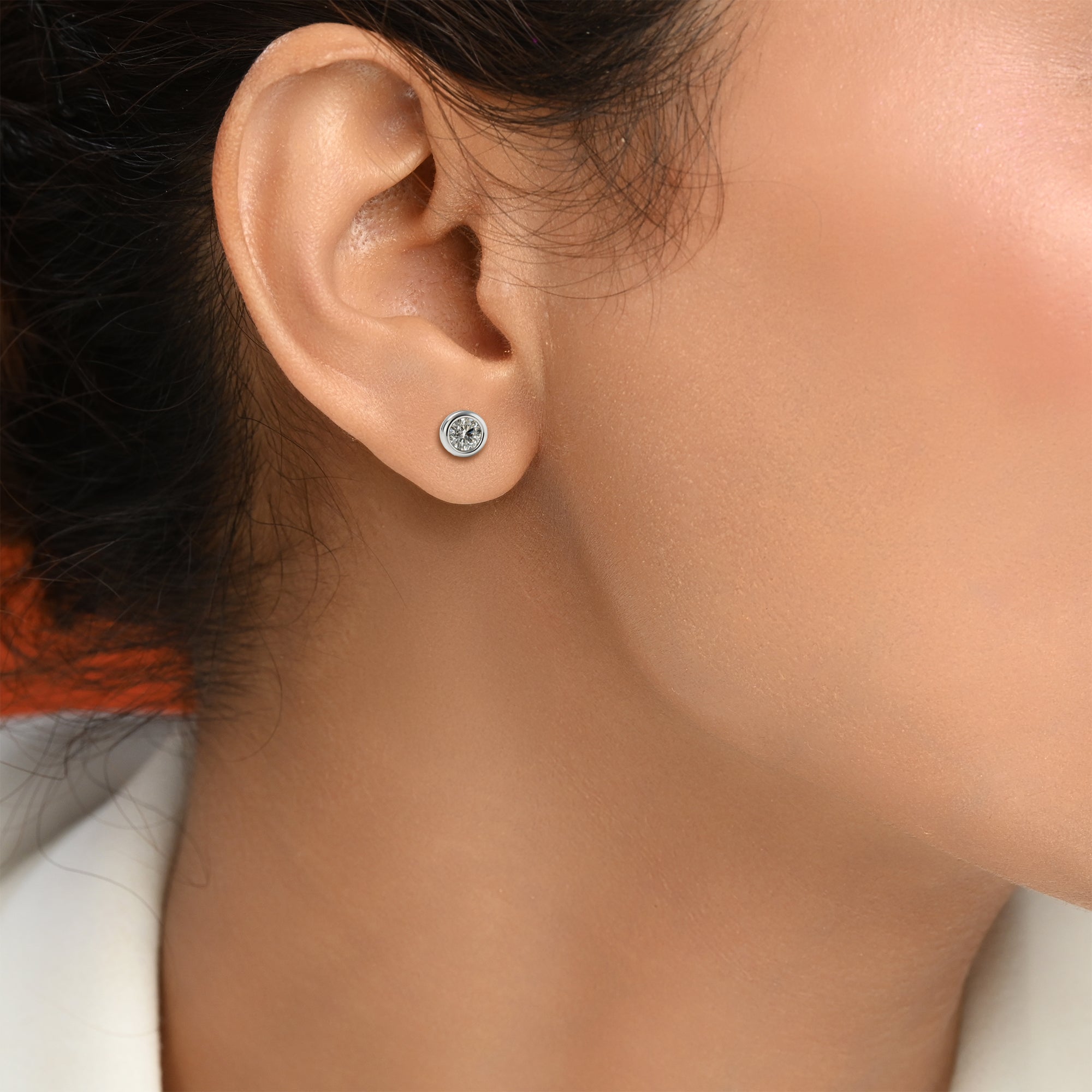 Moissanite bezel stud earring