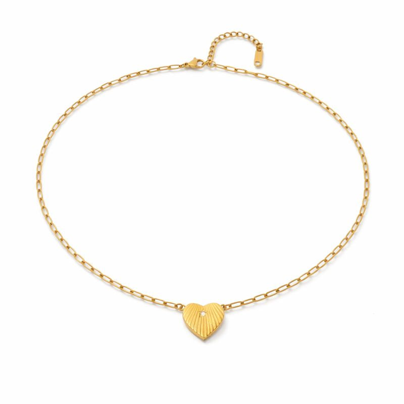 This exquisite heart-shaped necklace, adorned with a sparkling diamond at its center, embodying elegance and charm. The stylish link chain adds a modern touch, making it a perfect accessory for any occasion. Ideal for heartfelt gifts or as a statement piece for a special event.
