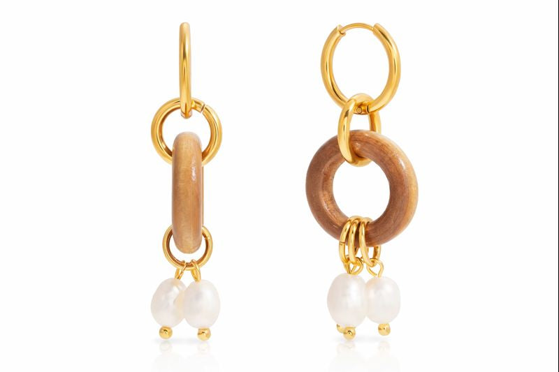 Terra Wood & Pearl Drop Earrings