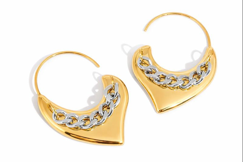 Two-Tone Heart Chain Earrings