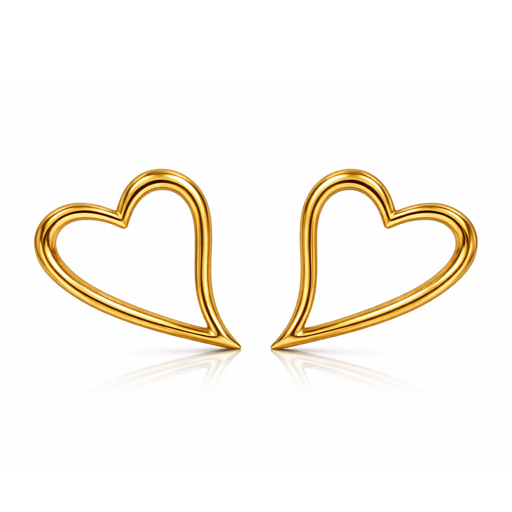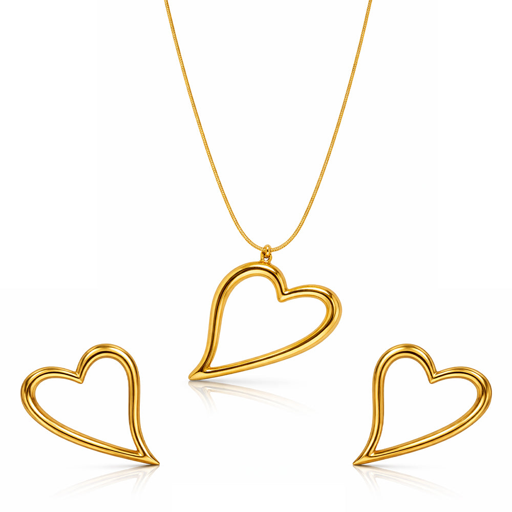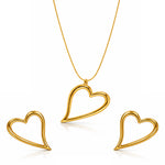 Graceful and symbolic, The Open Heart Collection celebrates love in its purest form. Crafted in polished gold, the fluid open-heart silhouette feels light, modern, and effortlessly romantic. The pendant rests delicately along a fine chain, while matching earrings mirror the same airy design — creating a look that is both cohesive and understated.