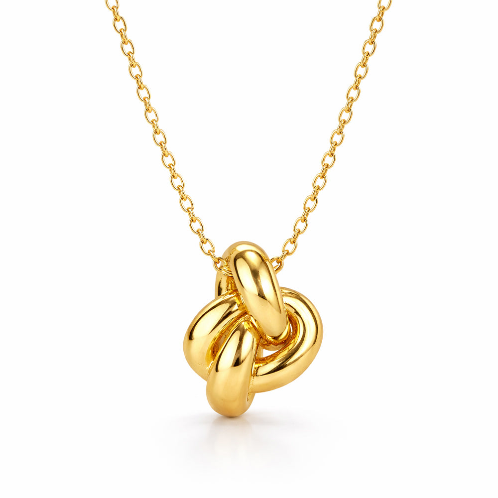 A modern symbol of unity and strength, this sculpted knot set features fluid, interwoven gold forms that catch the light from every angle. The matching pendant and earrings create a bold yet refined silhouette — perfect for elevating everyday looks or adding sculptural elegance to evening wear. Timeless, meaningful, and effortlessly chic.