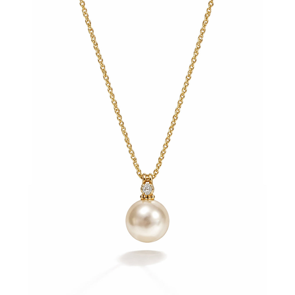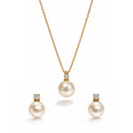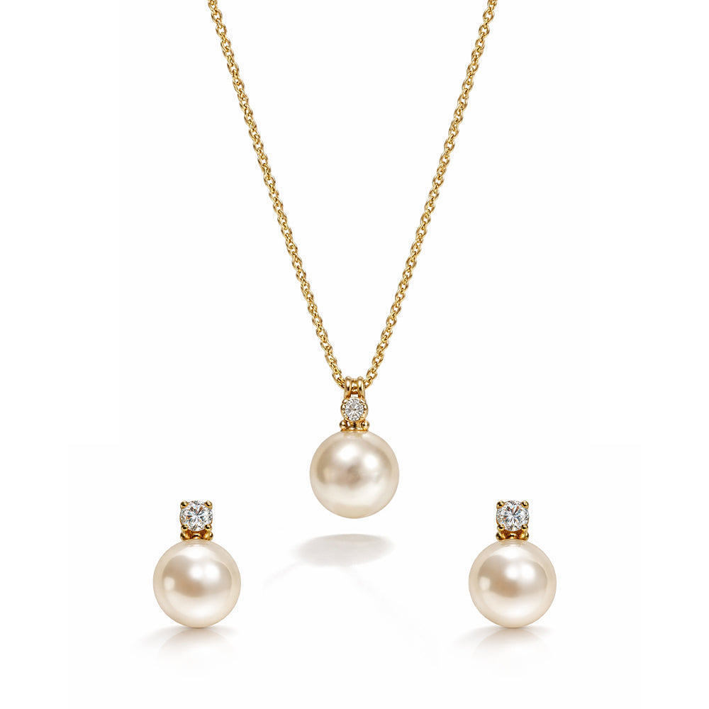 Softly radiant and timelessly refined, the Whispering Pearl Set captures the quiet beauty of classic elegance. A luminous pearl pendant, delicately accented with a subtle sparkle, rests gracefully along a fine gold chain. Matching pearl studs complete the look, offering balance, sophistication, and effortless charm.