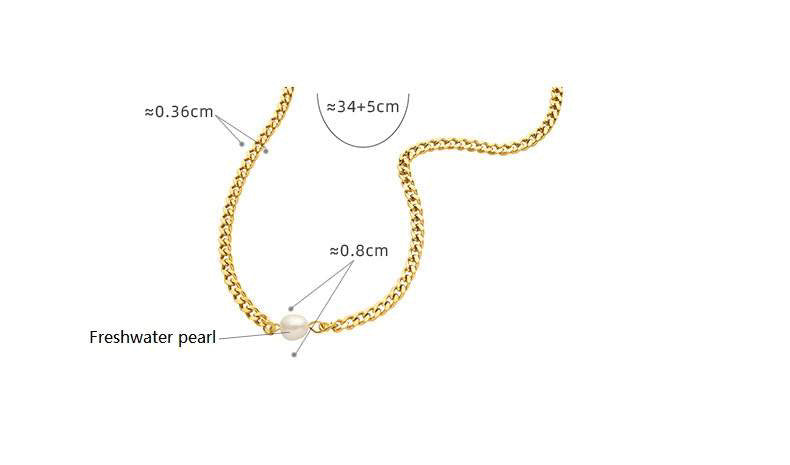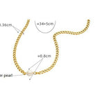 Our exquisite 18k Gold Plated Dainty Freshwater Pearl Cuban Chain Choker Necklace, a fusion of opulence and delicacy. Crafted with meticulous attention to detail, this necklace features luminous freshwater pearls delicately interspersed along a Cuban chain, creating a captivating juxtaposition of textures.
