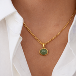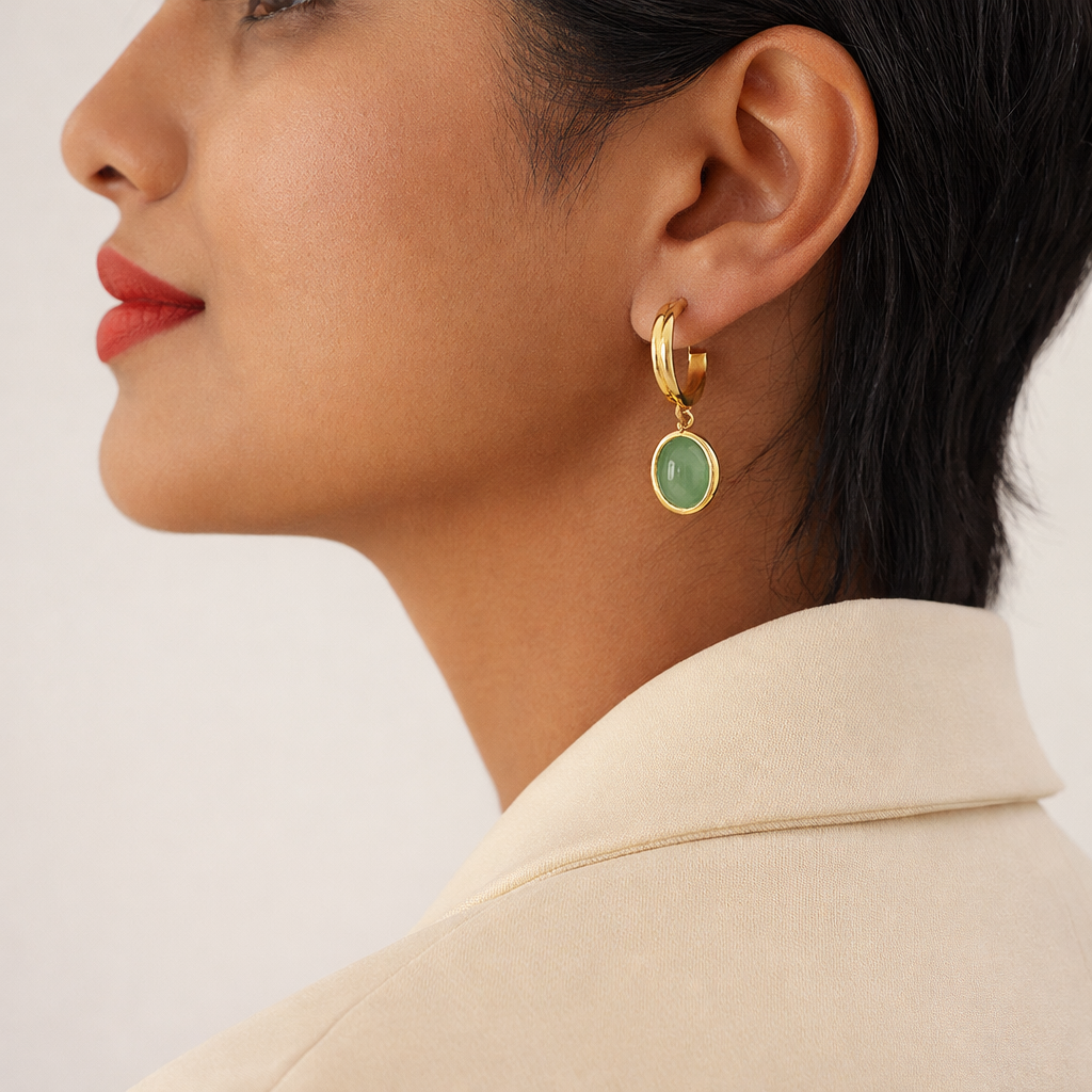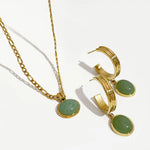 Embrace nature’s elegance with the Lush Green Stone , featuring 18K gold-plated metal paired with lush green stones for a timeless, sophisticated look. This set includes a dainty pendant necklace and matching hoop earrings, each adorned with a radiant green gemstone that symbolizes renewal and tranquility.
