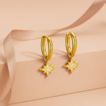 Delicate yet dazzling, the StarGlow Huggie Earrings are crafted with 18K gold plating and adorned with sparkling cubic zirconia crystals in a charming star shape. These lightweight, dainty hoops are perfect for adding a romantic shimmer to your everyday look or a special occasion. The secure huggie closure ensures comfort and elegance all day long. A timeless piece that blends modern shine with classic charm.