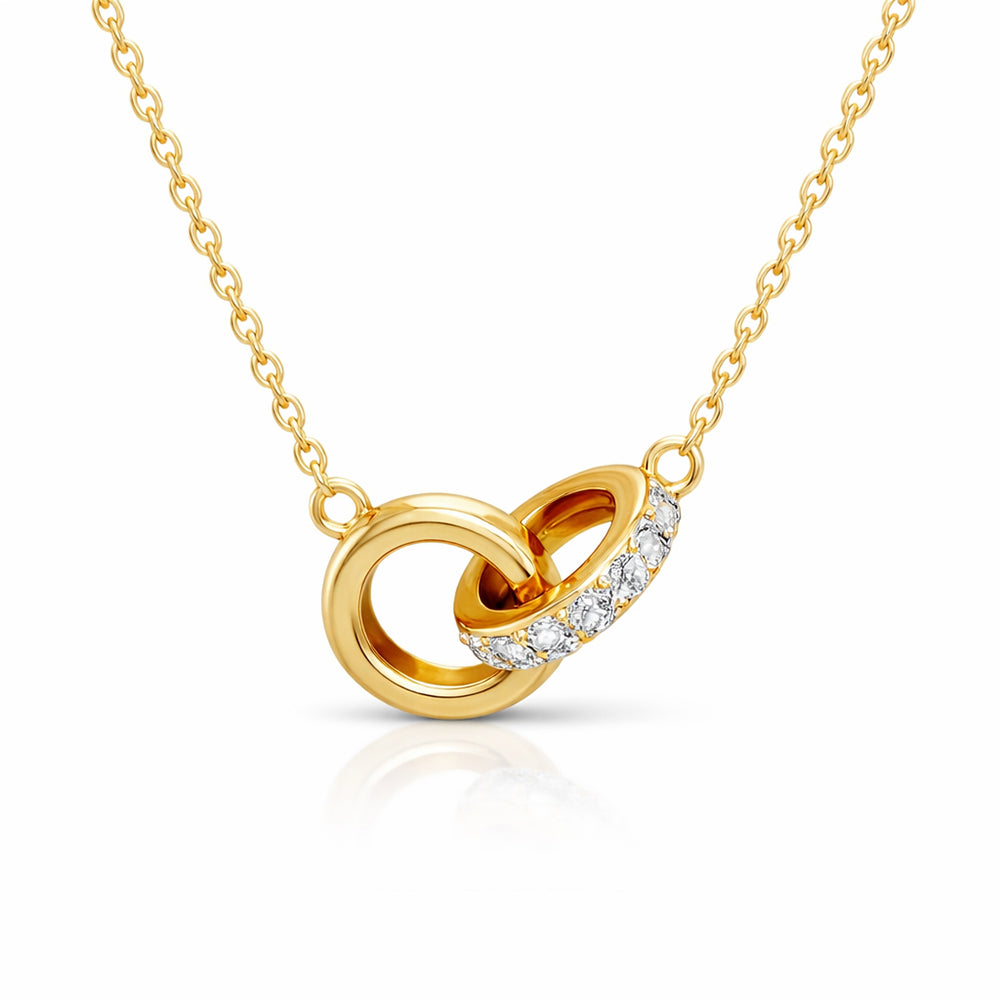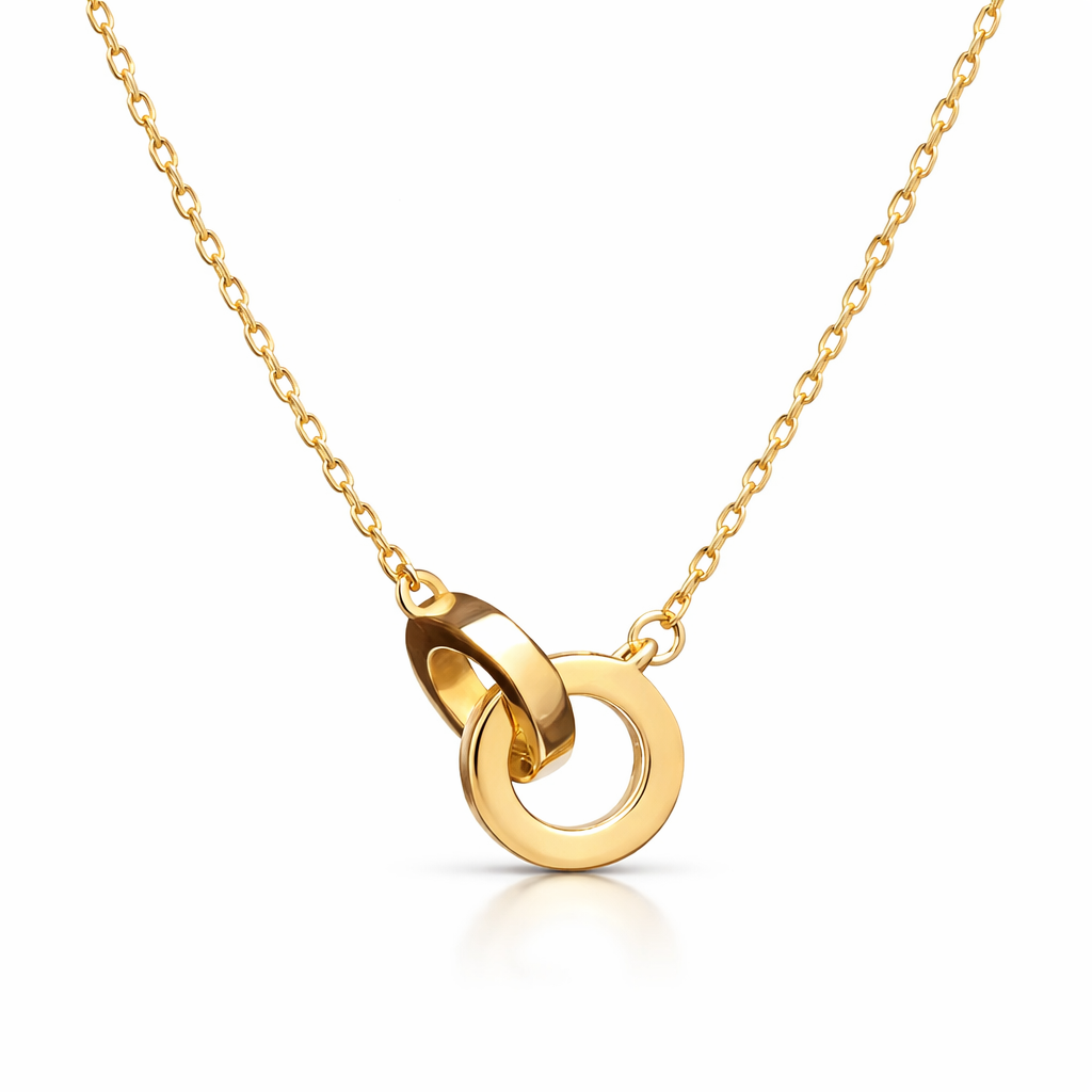 Delicate and modern, this 18K Gold plated necklace features an elegant design with interlocking rings that symbolize connection. Perfect for layering or wearing solo, it adds a touch of sophistication to any outfit, making it an ideal accessory for both casual and formal occasions.