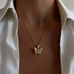 Celebrate grace and transformation with Aaina by Sanchi's Golden Butterfly Charm Necklace. Embellished with sparkling crystals, it’s a timeless accessory for every style.