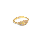 This stunning 925 silver re-sizable ring features a unique eye-shaped design adorned with sparkling cubic zirconia accents, set in a warm 18K gold plated finish. The intricate detailing and elegant silhouette make it a timeless addition to any jewelry collection. Ideal for adding a touch of sophistication to both casual and formal outfits.
