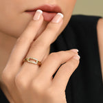 This stunning ring features a contemporary chain link design in 18K Gold plated, accentuated by a round-cut zirconia band for a touch of elegance. Crafted with precision, it combines both style and durability, making it a versatile accessory. Ideal for both casual outings and formal events, this ring adds a chic flair to any outfit.