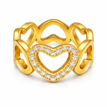 This elegantly designed ring features a unique heart motif, crafted in 18K Gold plated with an intricate openwork pattern. Adorned with cubic zircon as along the central heart, it adds a touch of glamour and sophistication. Perfect for romantic occasions or as a stylish everyday accessory, this ring makes a beautiful statement piece that symbolizes love and affection.