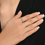 This elegant ring features a sleek 18K Gold plated band adorned with a stunning row of brilliant-cut stones, creating a sparkling effect that captures the light beautifully. Crafted with precision, it offers a comfortable fit while elevating any outfit with its timeless design. Ideal for both daily wear and special occasions, this ring adds a touch of sophistication to any ensemble, making it perfect for gifting or personal indulgence.