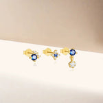 Embrace the cosmos with the Astral Echo™ Stud Set, a celestial trio designed to bring a touch of stardust to your everyday style. Crafted from high-quality 925 sterling silver and luxuriously plated in 18K gold, each stud captures the brilliance of the night sky with deep sapphire-inspired stones and twinkling cubic zirconia accents.