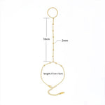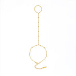 Grace your hand with the delicate elegance of the Auric Veil Bracelet, a stunning fusion of sophistication and ethereal beauty. This 18K gold-plated hand chain drapes effortlessly, featuring dainty beaded accents that shimmer with every movement. Designed for both modern minimalists and bohemian dreamers, it’s the perfect statement piece for any occasion.