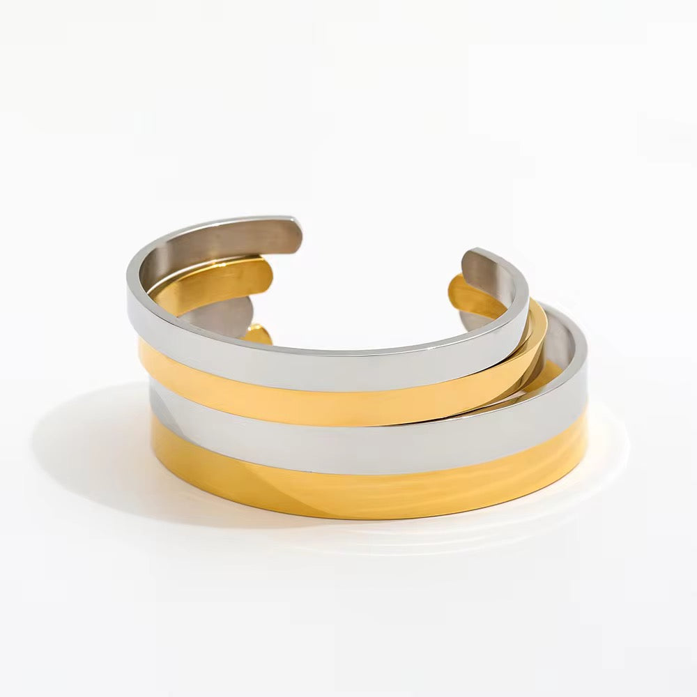 Simple, sleek, and endlessly stylish — the Everline BareGlow Bangle is your go-to for minimal elegance. Crafted with a smooth 18K gold-plated band, this bangle features an open, adjustable design that fits comfortably on any wrist. Whether worn solo for a clean look or stacked with your favorite bracelets, it adds a touch of effortless class to any outfit.