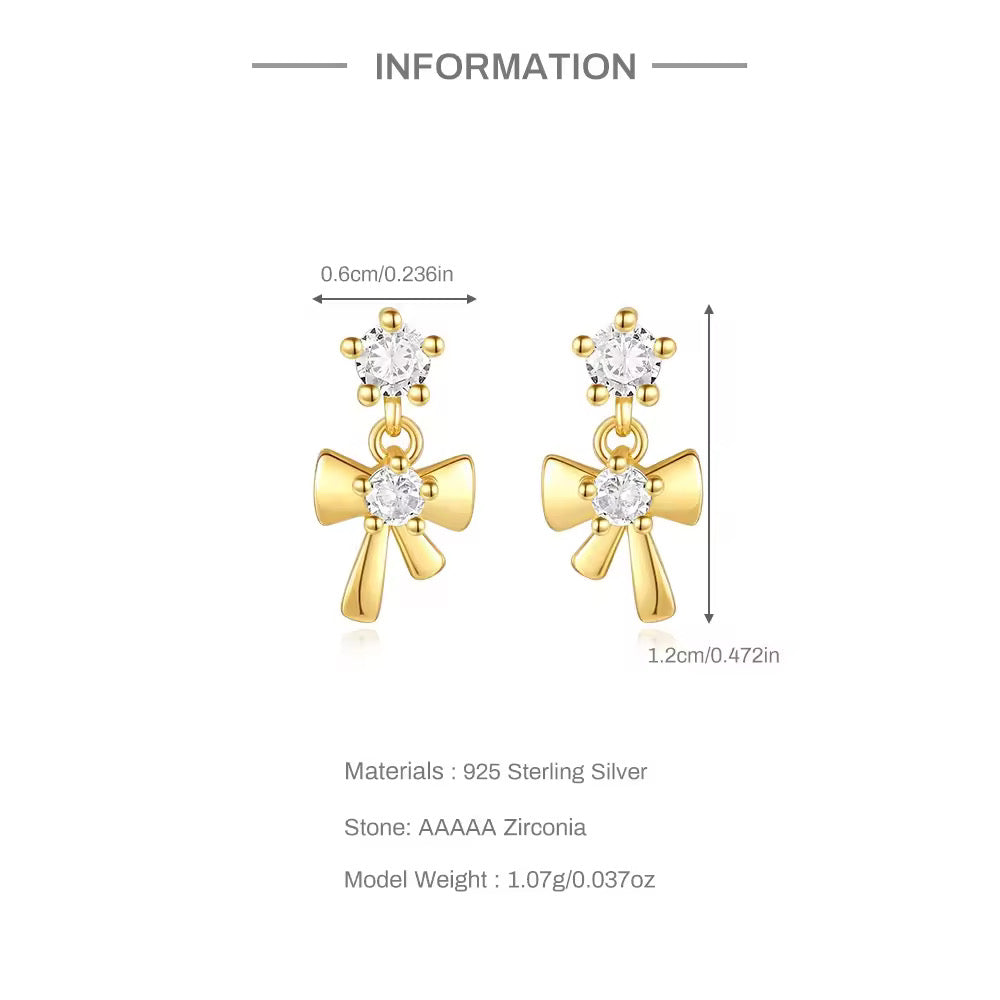 Add a touch of elegance and charm to your jewelry collection with the Belle Bow Sparkle Earrings. Designed to captivate, these dainty yet dazzling earrings feature a delicate bow adorned with shimmering cubic zirconia stones, bringing a timeless sparkle to your look.