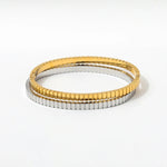 Step into a world of modern sophistication with this Elegance Bangle. These bracelets are designed to be versatile, perfect for adding a touch of luxury to any outfit, day or night.