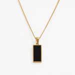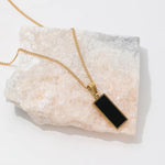 Make a bold statement Black Obsidian Pendant Necklace. A sleek black pendant on a gold chain, designed for timeless sophistication.