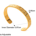 Elevate your everyday style with the Celeste Hammered Cuff. Featuring a beautifully hammered texture that catches the light from every angle, this 18k gold-plated bracelet brings a sense of effortless elegance and artisanal charm to your look. Its open cuff design ensures a comfortable, adjustable fit, making it perfect for stacking or standing out on its own.