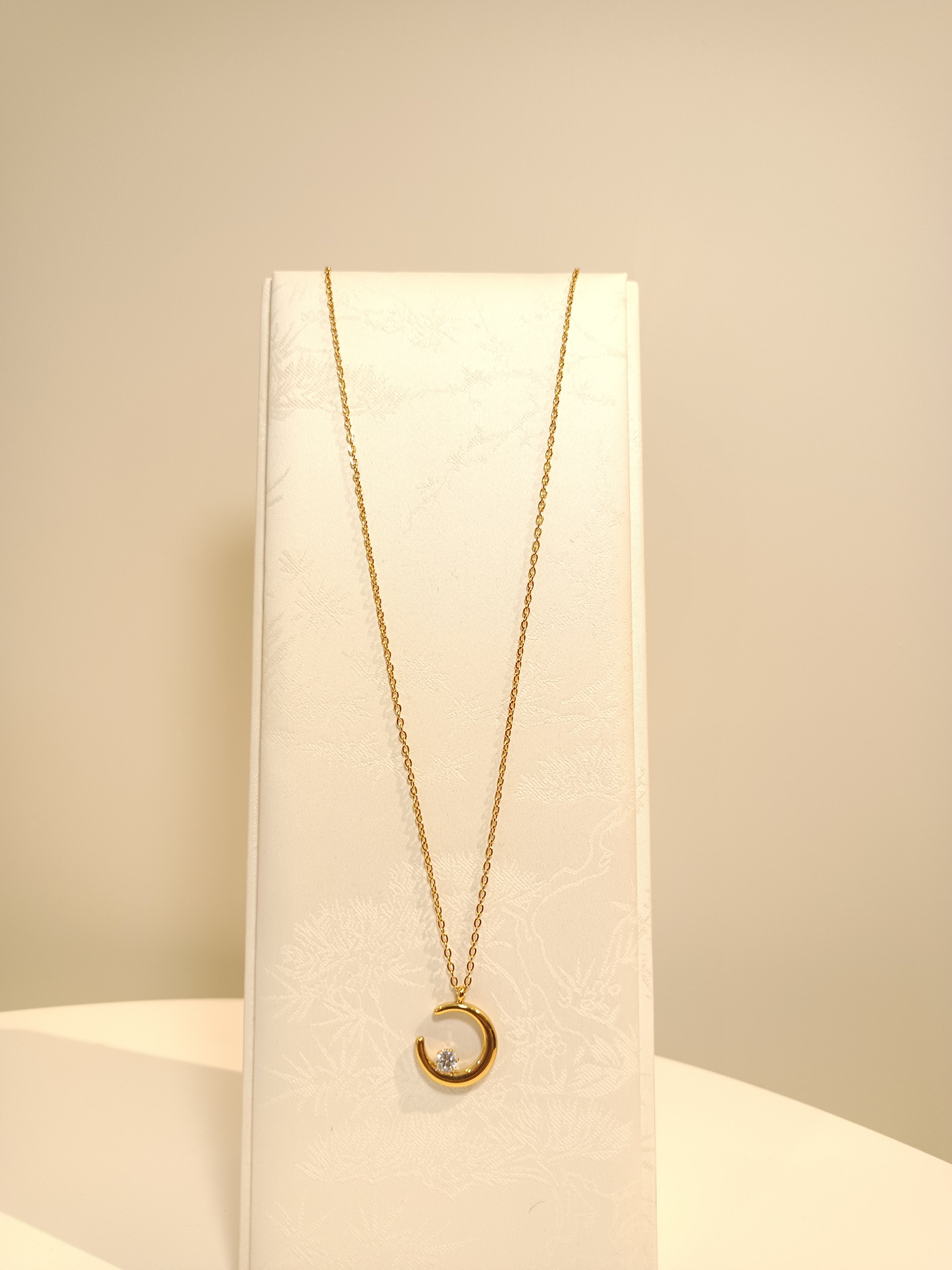 Embrace the magic of the night sky with the Celestial Crescent Necklace. This elegant and modern piece features a delicate crescent moon pendant, crafted from gleaming gold-plated stainless steel, cradling a single, brilliant zirconia star. Its minimalist design and graceful lines make it a versatile accessory for everyday wear or a subtle, sophisticated accent for a special occasion. Waterproof and anti-tarnish, this necklace is a timeless symbol of hope and new beginnings.