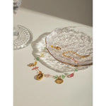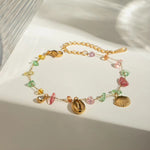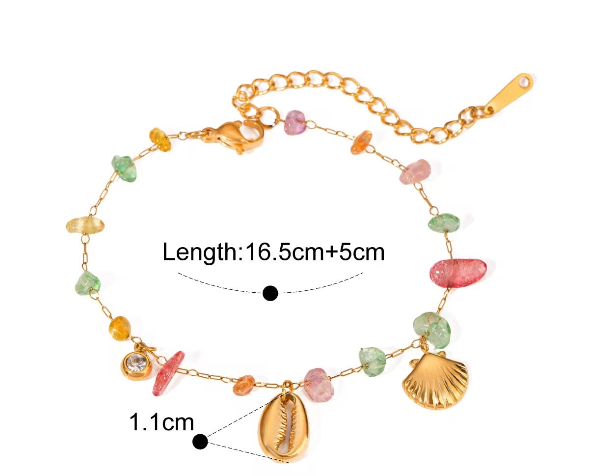Dive into vibrant elegance with the Coral Splash Necklace, crafted in luxurious 18k gold plating. This playful piece features an array of multicolored stones that shimmer like sunlight on ocean waves. Adorned with delicate sea-inspired charms, including a gleaming seashell, a golden cowrie, and a sparkling crystal, it’s the perfect way to channel coastal charm.