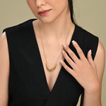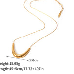This elegant 18K Gold plated necklace features a sleek, contemporary design with a smooth curved pendant that adds a touch of sophistication. Perfect for both casual and formal occasions, this necklace elevates any outfit with its modern charm.