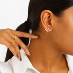 Add a sleek twist to your ear game with our Golden Orbit Crawlers. Designed to follow the curve of your ear, these contemporary earrings feature a series of polished gold-toned beads that create the illusion of a stacked, multi-piercing look — no extra piercings required.