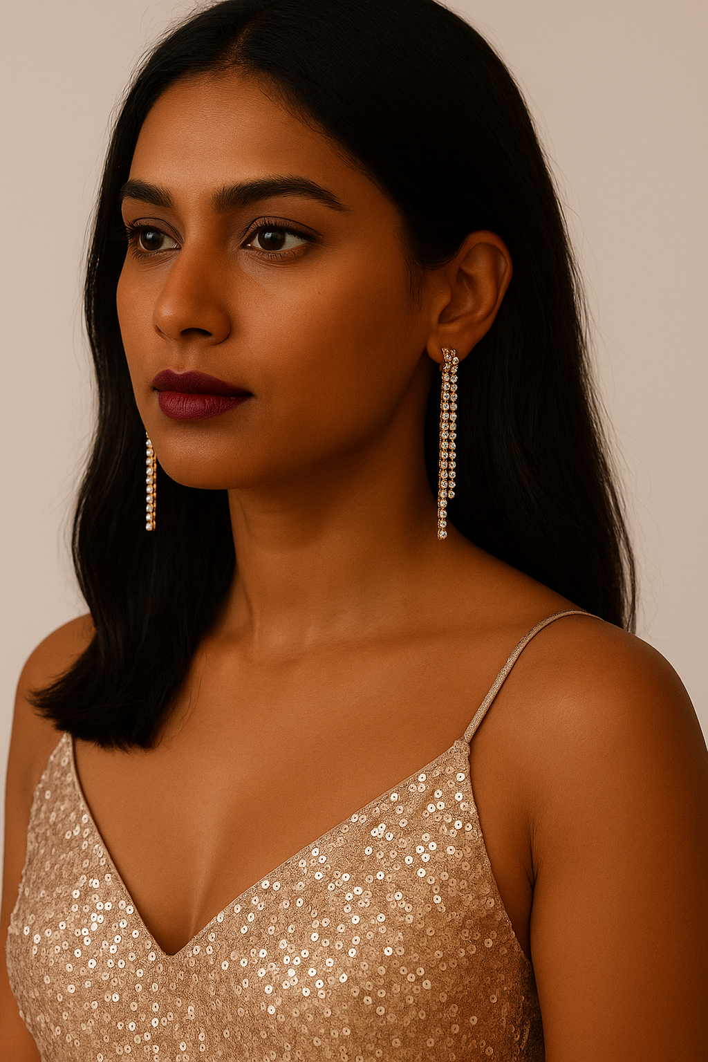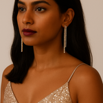 Elevate your elegance with the Duskfall Cascade Earrings, crafted in luxurious 18K gold plating. These unique ear cuffs feature dual rows of shimmering zircon stones that gently curve along the ear and flow into a graceful, elongated drop. Designed for both bold statements and refined glamour, they’re perfect for evening wear, special events, or when you simply want to shine a little brighter.