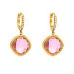Add a touch of elegance and color to your look with the Crystal Bloom Earrings. Crafted in 18K gold plating, these radiant hoop earrings feature cushion-cut crystals in rich, vibrant tones – from deep sapphire blue to blush pink. The pavé detailing on the hoops adds just the right amount of sparkle, making them perfect for both daytime glow-ups and evening glam.