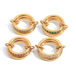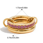 Sleek curves meet vibrant sparkle in the Eclipse Gem Ring — a striking blend of sculptural design and bold color. This 18k gold-plated beauty wraps around your finger with a glossy, domed band accented by a radiant row of pavé-set zircon stones. The intertwined knot detail adds a modern twist, symbolizing unity and strength. Available in topaze pink and emerald green, it's the perfect pop of luxe for any look.