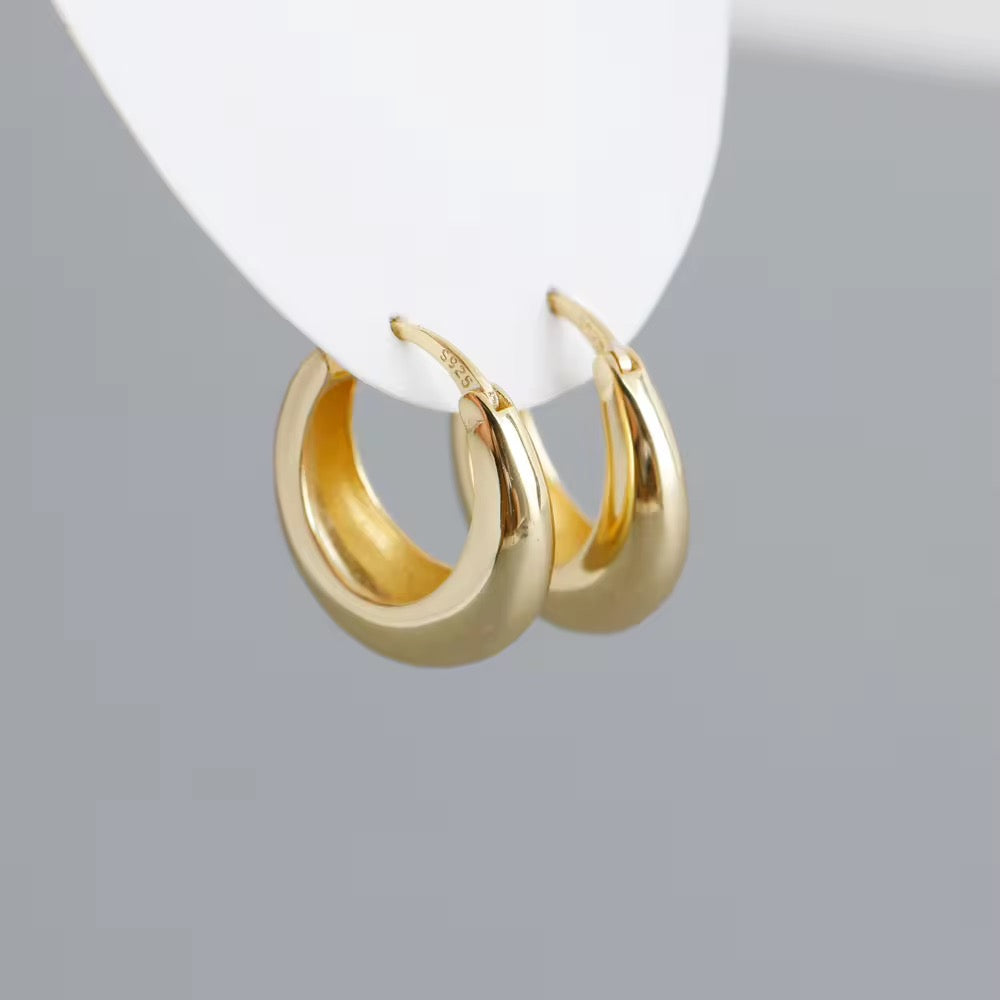 Indulge in timeless elegance with our Elysian Hoops, crafted from premium 18K gold-plated sterling silver, for a luxurious, radiant finish. These sleek, slightly chunky hoops offer the perfect balance of sophistication and versatility, making them an essential staple for any jewelry collection.