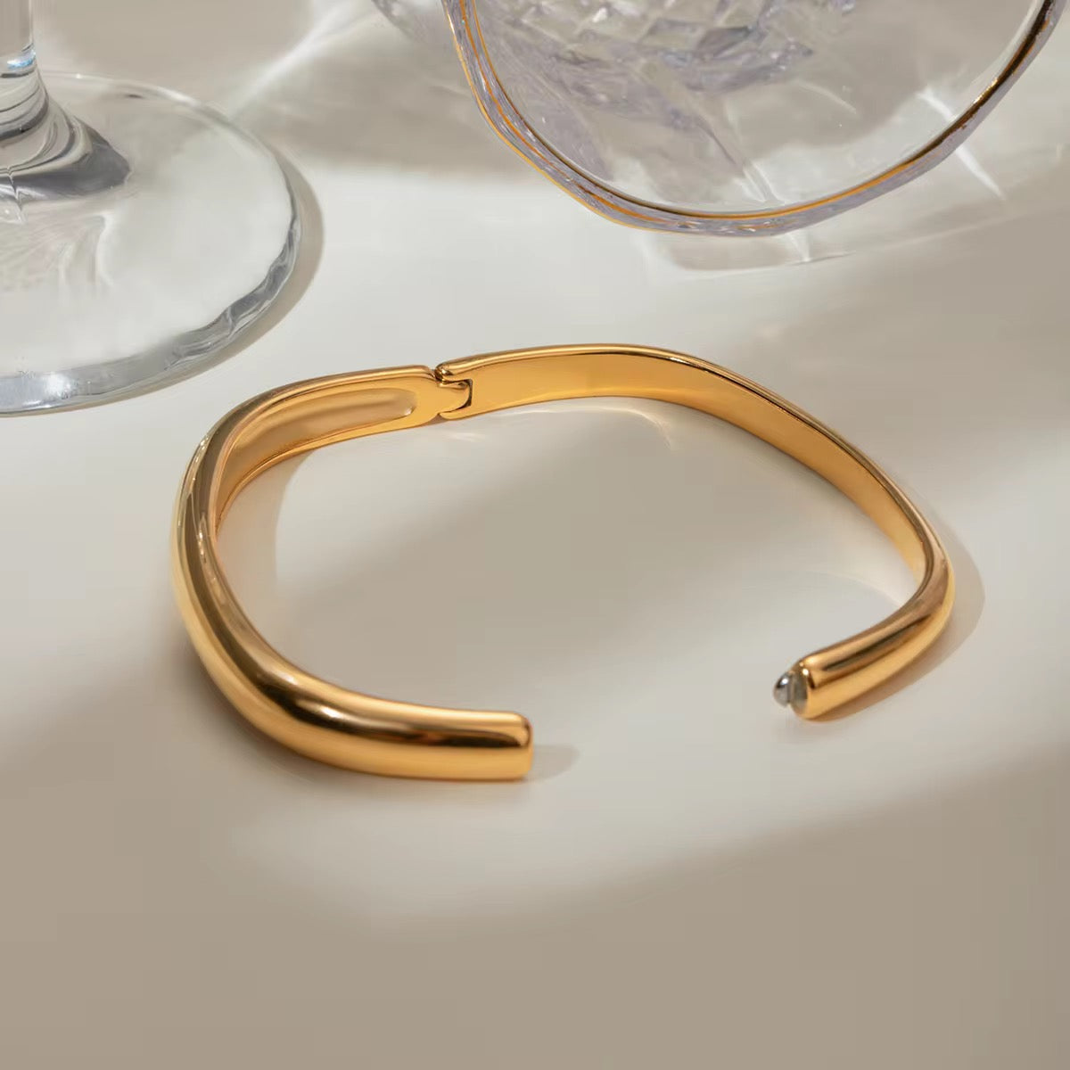 Timeless elegance meets modern sophistication with the Eterna Luxe Bracelet. Crafted with a sleek, polished finish and a refined design, this bracelet embodies effortless luxury. Its smooth, contoured shape offers a comfortable fit, making it the perfect statement piece for both everyday wear and special occasions.