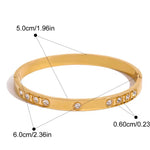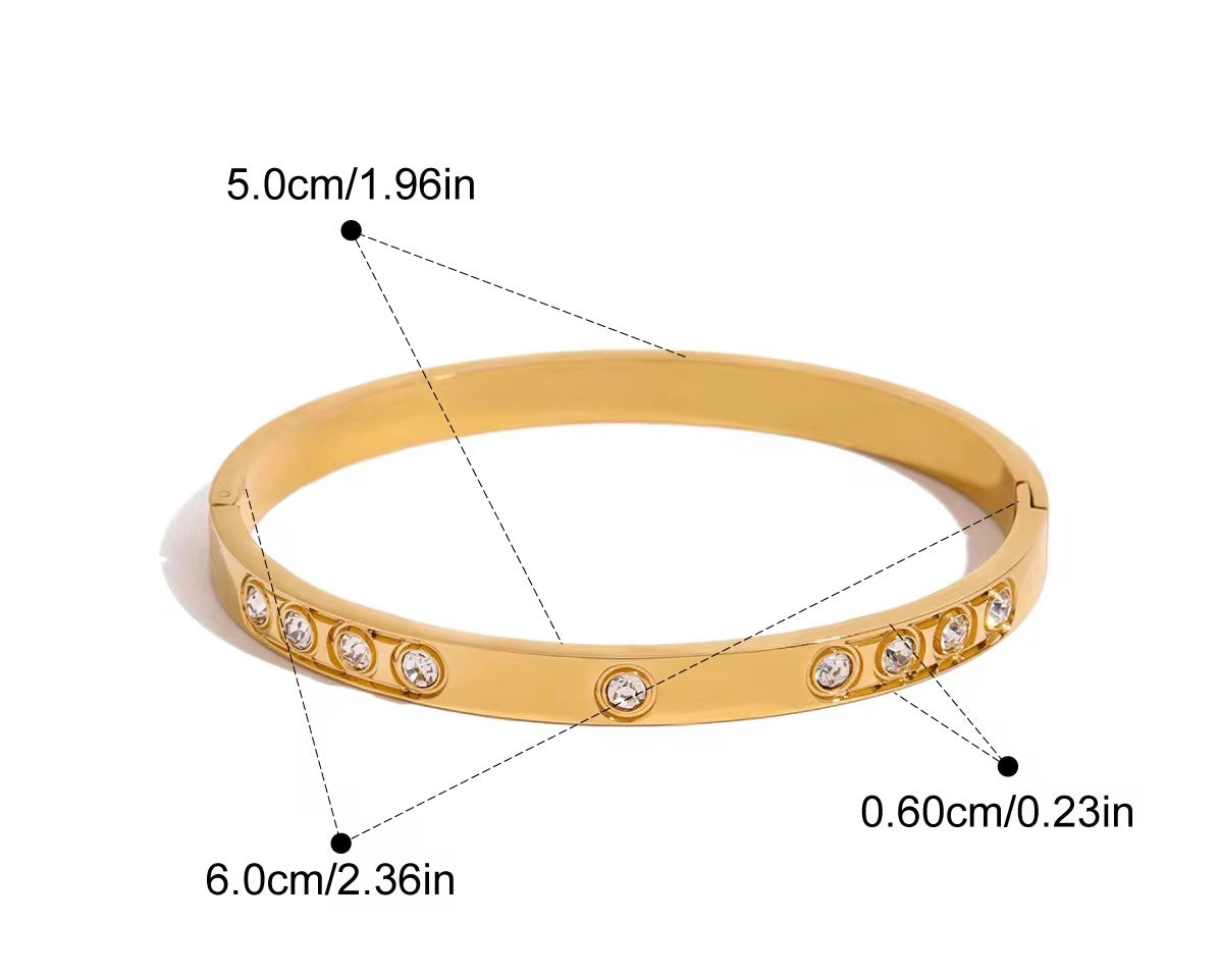 Sleek, sophisticated, and made to shine — this GlowStone Band Bangle is your go-to for timeless elegance. Crafted from durable metal and finished in radiant 18k gold plating, this bracelet features a flawless row of sparkling crystals for just the right amount of shine. Its slim, structured design makes it perfect for stacking or wearing solo as a statement piece.