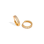 These stunning 18K Gold plated hoop earrings feature a row of sleek rectangular gemstones, creating a modern and elegant look. Designed for a secure fit, they effortlessly elevate any outfit with their chic appeal. Perfect for both everyday wear and special occasions, these earrings add a touch of sophistication to any ensemble.