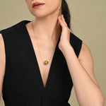 This adjustable necklace features a smooth, 18K Gold plated sphere pendant suspended from a delicate chain, exuding modern sophistication. Its minimalist design makes it a versatile accessory, perfect for both everyday wear and special occasions, adding a touch of elegance to any outfit.