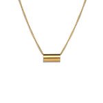This elegant 18K Gold plated necklace features a sleek cylindrical pendant that adds a touch of modern sophistication to any ensemble. The fine chain complements the bold design, making it a perfect accessory for both casual and formal occasions. Ideal for layering with other pieces or as a standalone statement item, it enhances a variety of outfits effortlessly.