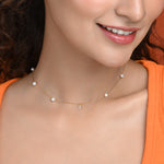 This delicate necklace features a 18K Gold plated chain accented with elegant pearls and a shimmering drop pendant, creating a harmonious blend of texture and shine. Perfect for both casual outings and formal events, this piece adds a touch of sophistication to any ensemble.
