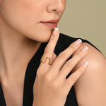 This contemporary ring features a unique geometric design crafted from high-quality 18K Gold plated, showcasing smooth lines for a modern aesthetic. Its open structure allows for adjustable sizing, making it comfortable for various finger sizes. Ideal for adding a bold statement to everyday attire or complementing an elegant evening outfit.