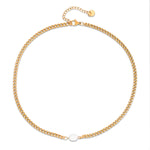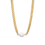 This elegant 18K Gold plated chain necklace features a striking freshwater pearl at its center, blending modern design with a touch of sophistication. Its versatile style makes it an ideal accessory for both casual outings and formal occasions, effortlessly enhancing any outfit.
