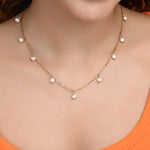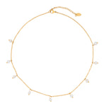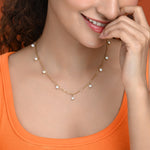 This exquisite necklace features delicate 18K Gold plated chain links adorned with luminous freshwater pearls, creating an elegant and eye-catching piece. Its refined design makes it perfect for enhancing both casual and formal outfits. Ideal for adding a touch of sophistication to any occasion.
