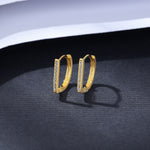 These elegant earrings feature a sleek 18K Gold plated-tone rectangular design, adorned with a row of sparkling cubic zirconia for a touch of brilliance. Their hinged closure ensures a secure fit while providing comfort throughout the day. Perfect for both casual and formal occasions, these earrings add a sophisticated accent to any outfit.