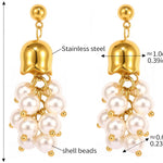 Elegant and eye-catching, our Golden Blossom Pearl Drop Earrings feature a floral-inspired 18k gold-plated cap from which clusters of lustrous shell beads cascade gracefully. The stainless steel base ensures durability, while the lightweight design offers all-day comfort. Perfect for weddings, parties, or elevating your everyday style, these earrings are hypoallergenic and tarnish-resistant for lasting beauty.