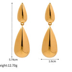 Make a statement with Golden Drip Drop Earrings, the epitome of sleek sophistication. Sculpted in an elegant teardrop silhouette and plated in radiant 18k gold, these earrings bring a fluid, modern charm to your jewelry collection. Measuring 5.74 cm in length and weighing just 12.7g, they offer the perfect balance of bold presence and comfortable wear.