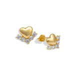 These exquisite heart-shaped earrings feature a polished 18K Gold plated finish complemented by sparkling cubic zirconia stones, elegantly arranged in a chic setting. Crafted for comfort, they offer a secure fit for everyday wear while adding a touch of romance to any outfit. Perfect for date nights or special occasions, these earrings effortlessly enhance your look and express your affection.