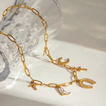 Embrace a blend of rustic charm and timeless elegance with our Lucky Trails Necklace. This distinctive piece features an array of symbolic charms with Horseshoe, Cross, Cowboy Boot, and Star Charms, each meticulously crafted and suspended from a luxurious 18K gold-plated chain, making it a versatile addition to any jewelry collection.