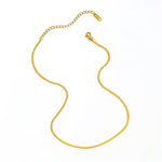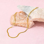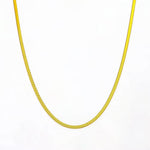 Elevate your style with the Luminara Herringbone Chain, a sleek and radiant must-have. Crafted 18K gold plated for a luxurious finish, this timeless piece drapes effortlessly along the neckline, reflecting light with every movement. Its fluid, snake-like design exudes sophistication, making it perfect for both everyday wear and special occasions.