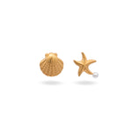 These exquisite earrings feature a beautifully detailed seashell and a starfish design, both crafted in high-quality 18K Gold plated with a lustrous faux pearl accent. Their unique marine-inspired aesthetic makes them a striking choice for elevating beachwear or casual ensembles, adding a whimsical touch to any outfit.