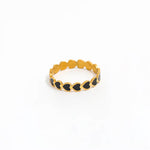 Embrace elegance and romance with the Midnight Hearts Ring, a timeless piece designed for those who love a blend of sophistication and charm. Crafted from high-quality stainless steel and plated with 18K gold, this ring features a delicate row of black enamel hearts, symbolizing love, mystery, and confidence.
