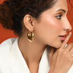 These elegant 18K Gold plated-tone earrings feature a sleek, sculptural design with a polished finish that captures light beautifully. Crafted from durable materials, they ensure both style and longevity for any occasion. Perfect for adding a touch of sophistication to casual outfits or elevating formal wear, these earrings are versatile enough for everyday wear or special events.